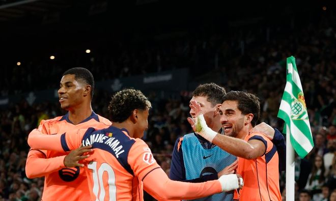 巴萨在客场完成逆袭好戏,以5-3掀翻了皇家贝蒂斯。这场比赛安东尼早早就攻破了巴萨的大门。随后巴萨进入疯狂进球模式。费兰短时间内连进2球,帮助巴萨反超比分。随后,佩德里助攻巴尔德吉进球扩大比分。紧接着,费兰再次进球完成帽子戏法。下半场巴萨获点球机会。亚马尔主罚命中,把比分改写为5-1。最后时刻巴萨有些松懈。迭戈-略伦特扳回一球。库乔依靠点球机会继续缩小差距。最终的比分定格为5-3,巴萨有惊无险拿下比赛。
